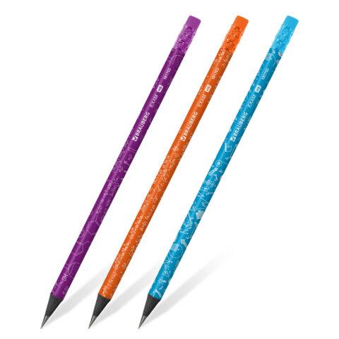 Карандаш чернографитный BRAUBERG "EXAM", 1 шт., HB, с ластиком, корпус ассорти, 181753