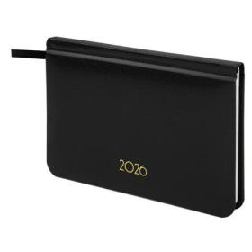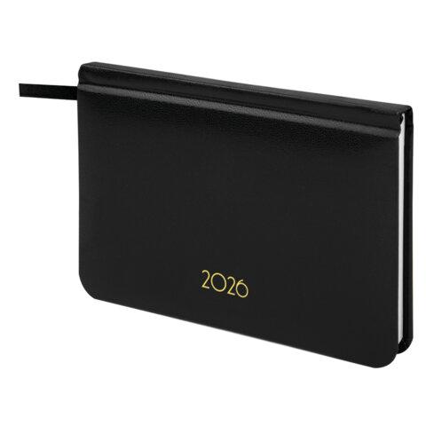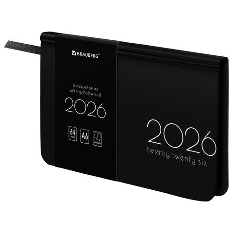Еженедельник датированный 2026, МАЛЫЙ ФОРМАТ 95х155 мм, А6, BRAUBERG "Select", балакрон, черный, 117193