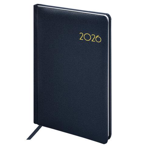 Еженедельник датированный 2026, А5, 145х215 мм, BRAUBERG "Select", балакрон, темно-синий, 117181