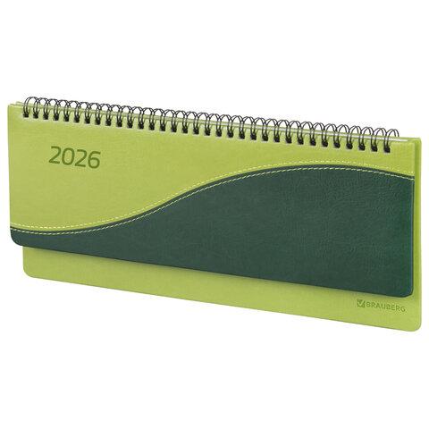 Планинг датированный 2026 305х140 мм BRAUBERG "Bond", под кожу, светло-зеленый, 117221