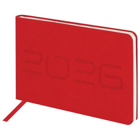 Еженедельник датированный 2026 МАЛЫЙ ФОРМАТ 105х160 мм, А6, BRAUBERG "Imprint", тиснение, красный, 117211