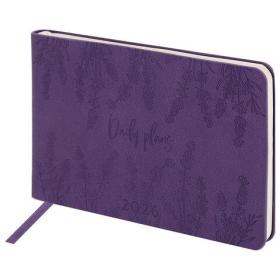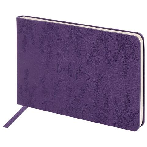 Еженедельник датированный 2026 МАЛЫЙ ФОРМАТ 95х155 мм, А6, BRAUBERG "Foliage", под кожу, сиреневый, 117201