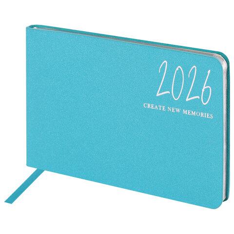 Еженедельник датированный 2026, МАЛЫЙ ФОРМАТ 95х155 мм, А6, BRAUBERG "Rainbow", под кожу, бирюза, 117189