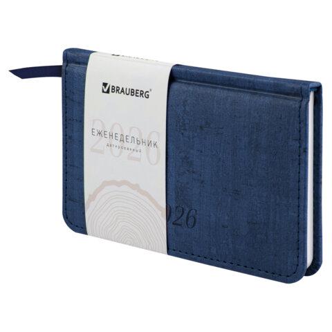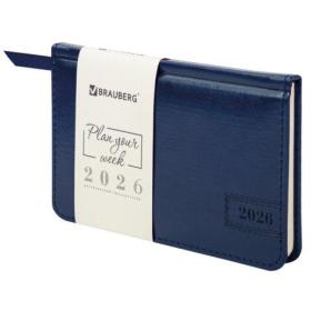 Еженедельник датированный 2026, МАЛЫЙ ФОРМАТ, 95х155 мм, А6, BRAUBERG "Select", балакрон, темно-синий, 117192