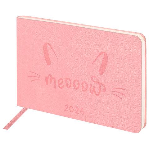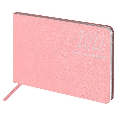Еженедельник датированный 2026 МАЛЫЙ ФОРМАТ 105х160 мм, А6, BRAUBERG "Imprint", тиснение, розовый, 117213