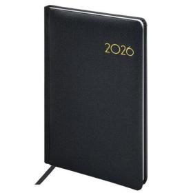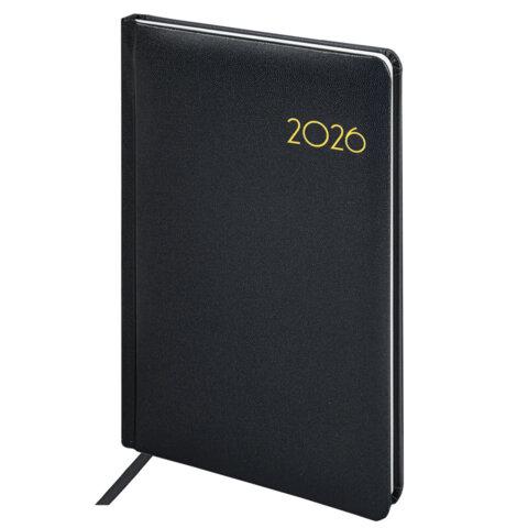 Еженедельник датированный 2026, А5, 145х215 мм, BRAUBERG "Select", балакрон, черный, 117182