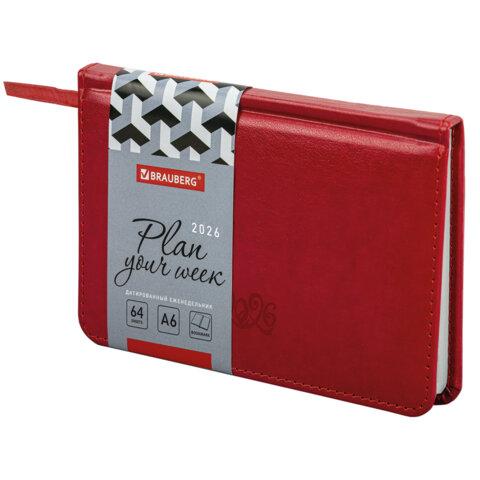 Еженедельник датированный 2026 МАЛЫЙ ФОРМАТ 105х160 мм, А6, BRAUBERG "Unique", красный, 117206
