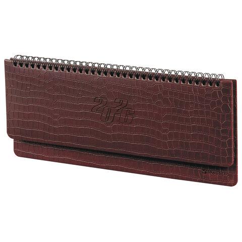 Планинг датированный 2026 305х140 мм BRAUBERG "Iguana", под кожу, красный, 117225