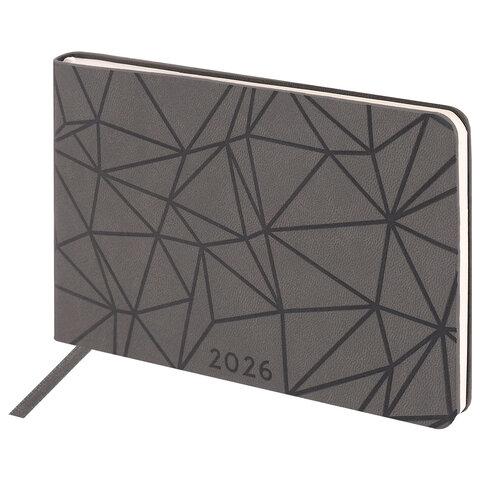 Еженедельник датированный 2026 МАЛЫЙ ФОРМАТ 105х160 мм, А6, BRAUBERG "Blaze", фольга, серый, 117218