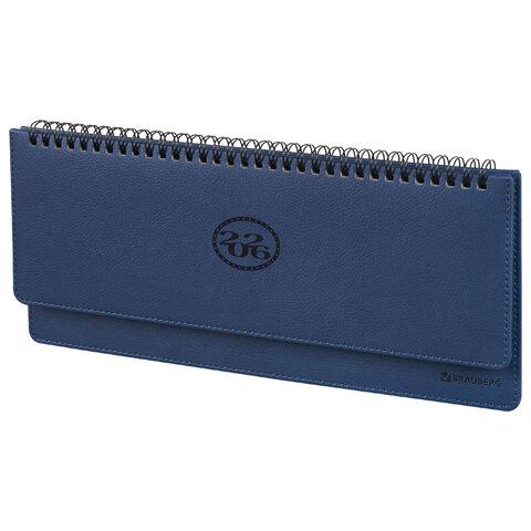 Планинг датированный 2026 305х140 мм BRAUBERG "Imperial", под кожу, синий, 117228