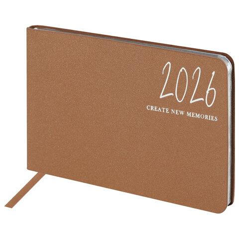 Еженедельник датированный 2026 МАЛЫЙ ФОРМАТ 105х160 мм, А6, BRAUBERG "Blaze", фольга, бежевый, 117216