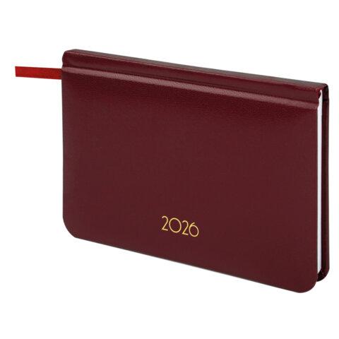 Еженедельник датированный 2026, МАЛЫЙ ФОРМАТ 95х155 мм, А6, BRAUBERG "Select", балакрон, бордо, 117194