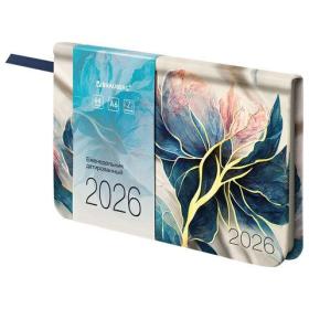 Еженедельник датированный 2026 МАЛЫЙ ФОРМАТ 95х155 мм, А6, BRAUBERG "Vista", под кожу, "Цветы", 117204