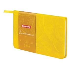 Еженедельник датированный 2026 МАЛЫЙ ФОРМАТ 95х155 мм, А6, BRAUBERG "Foliage", под кожу, желтый, 117200
