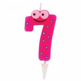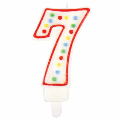 Свеча-цифра для торта "7" "С глазками", 6 см, ЗОЛОТАЯ СКАЗКА, с держателем, в блистере, 591410