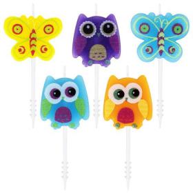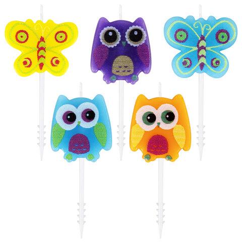 Свечи фигурные для торта на шпажках "Совы и бабочки", 5 шт., 2,5х3 / 2,5х2,5 см, ЗОЛОТАЯ СКАЗКА, 591465