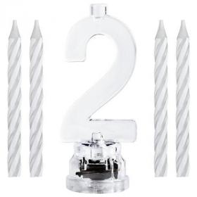 Цифра-подсвечник "2" светодиодная, ЗОЛОТАЯ СКАЗКА, в наборе 4 свечи 6 см, 1 батарейка, 591425
