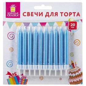 Набор свечей для торта 20 шт., 8 см, с держателями, голубые, ЗОЛОТАЯ СКАЗКА, в блистере, 591455