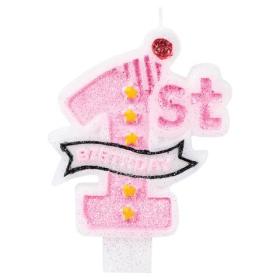 Свеча-цифра для торта "1 годик", розовая, 9,5 см, ЗОЛОТАЯ СКАЗКА, в блистере, 591444