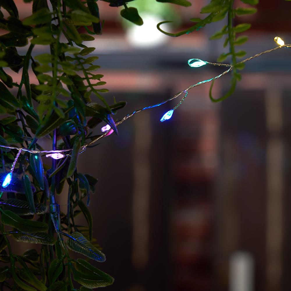 Гирлянда линейная от батареек FERON CL588, 20LED, (мультиколор), статичная (постоянного свечения), 2м прозрачный шнур, расстояние между светодиодами 10см, IP20, 2W, на батарейках последовательное подключение - НЕТ