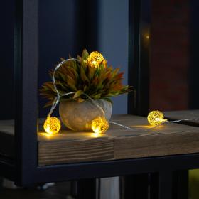 Гирлянда линейная от батареек FERON CL588, 20LED, 2700К (белый теплый), статичная (постоянного свечения), 2м прозрачный шнур, расстояние между светодиодами 10см, IP20, 2W, на батарейках последовательное подключение - НЕТ