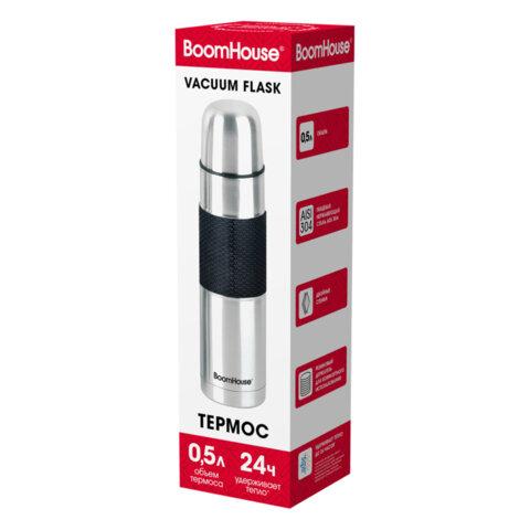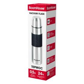 Термос 0,5 л, BOOMHOUSE (БУМХАУС) CLASSIC, нержавеющая сталь SUS304, черный силиконовый рукав, крышка / кружка, 700307