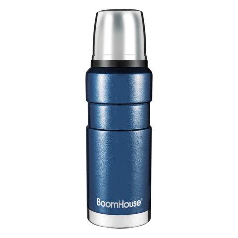 Термос 0,6 л, BOOMHOUSE (БУМХАУС) DARKBLUE, нержавеющая сталь SUS304, молотковая эмаль, крышка / кружка, синий, 700309