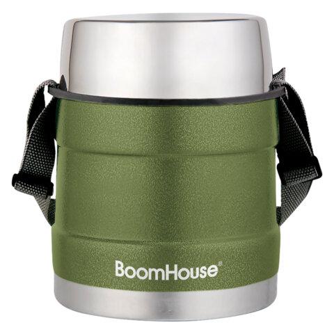 Термос 0,7 л для еды / напитков с широким горлом, BOOMHOUSE (БУМХАУС) RIBBED, нержавеющая сталь SUS304, оливковый, 700321