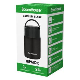 Термос 1 л для еды / напитков с широким горлом, BOOMHOUSE (БУМХАУС) LUNCH, нержавеющая сталь SUS304, черный, 700327