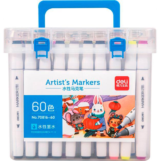 Набор маркеров для скетчинга Deli 70816-60 двойной пиш. наконечник 60цв. пластиковая коробка (60шт.)