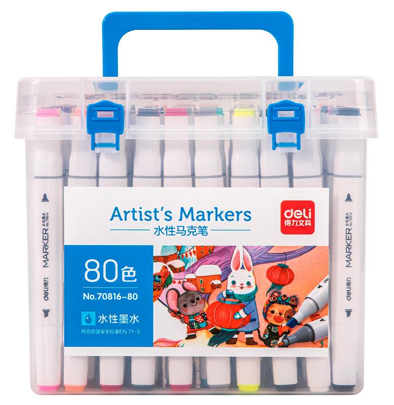 Набор маркеров для скетчинга Deli 70816-80 скошенный пиш. наконечник 80цв. пластиковая коробка