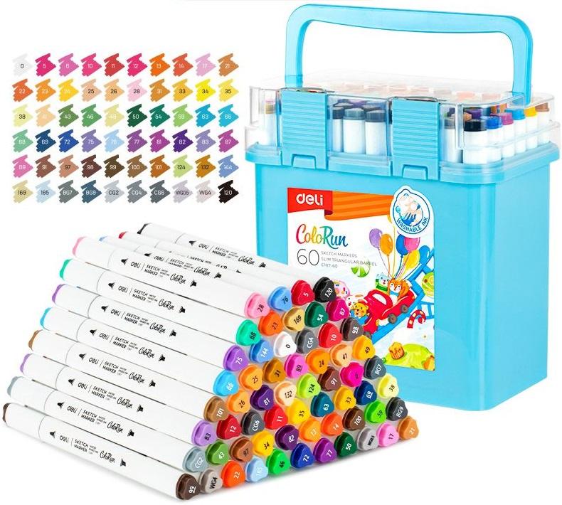 Набор маркеров для скетчинга Deli 70816-60 двойной пиш. наконечник 60цв. пластиковая коробка (60шт.)