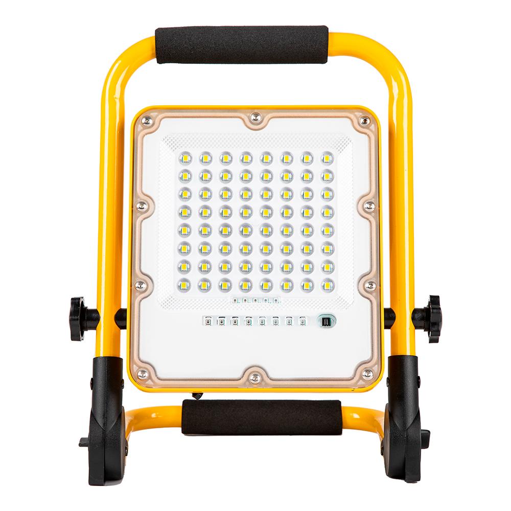 Прожекторы светодиодные на штативе, переносные с ручкой, с зарядным устройством (ДО) FERON LL-951, 50W, 6400К (холодный белый), 230V / 50Гц, 5000Lm, IP66, угол рассеивания 120°,*SMD5730, раб.t -40°C - +40°C, цвет жёлтый, корпус алюминий, 60*260*320 мм