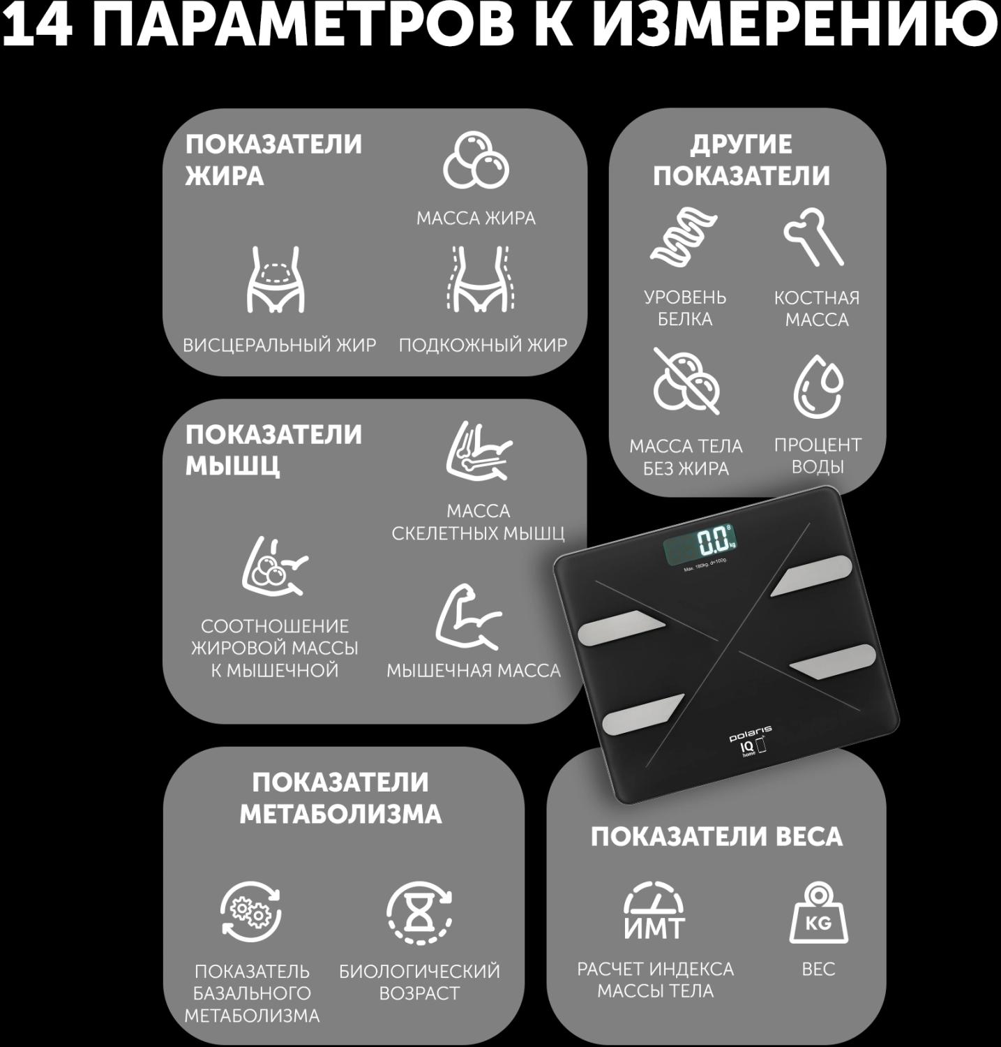 Весы напольные электронные Polaris PWS 1898 IQ Home макс.180кг черный