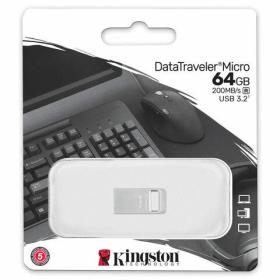 Флеш-диск 64 GB, KINGSTON DataTraveler Micro USB 3.2, металлический корпус, серебристый, DTMC3G2 / 64GB