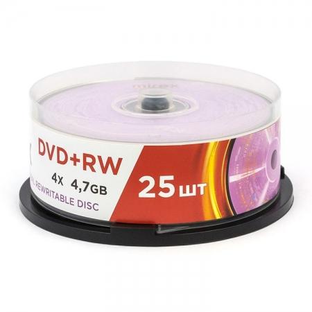 Диск DVD+RW Mirex 4,7 Gb 4x, Cake Box, 25шт (UL130022A4M)