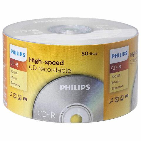Диск CD-R PHILIPS, 700 Мб, 52x, Cake Box (упаковка на шпиле), КОМПЛЕКТ 50 шт., CR7D5SB50 / 97