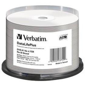 Оптический диск DVD-R Verbatim 4.7ГБ 16x 50шт. cake box printable [43533]