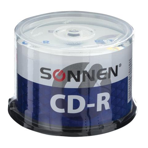 Диск CD-R SONNEN 700 Mb 52x Cake Box (упаковка на шпиле), КОМПЛЕКТ 50 шт., 512570