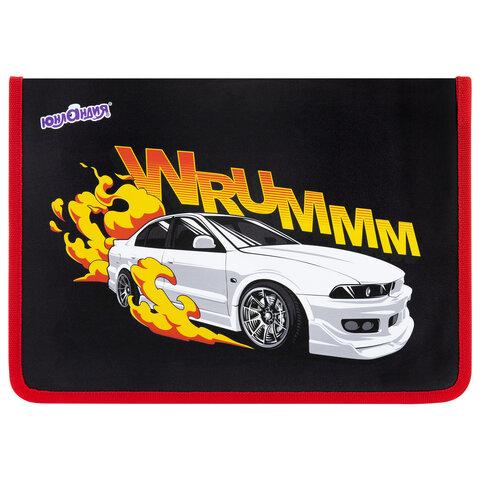 Папка для труда на молнии ЮНЛАНДИЯ А4, 1 отделение, откидная планка, органайзер, "Fire car", 272223