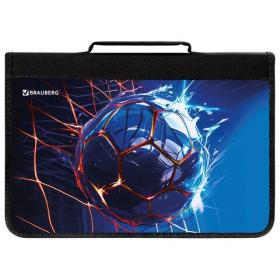 Папка на молнии BRAUBERG А4 с ручкой, с органайзером, 1 отделение, "Black football", 270992