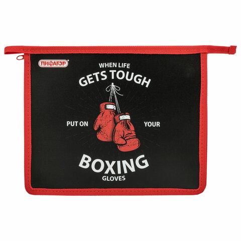 Папка для тетрадей ПИФАГОР А5, 1 отделение, пластик, на молнии, Boxing, 272196