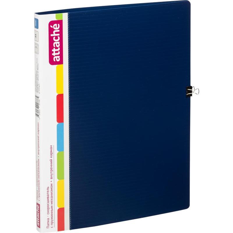 Скоросшиватель пластиковый с пружин.мех.+зажим Attache,0.7 мм, синий