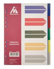 Разделитель индексный Бюрократ ID114 A4 пластик 5 индексов с бумажным оглавлением цветные разделы