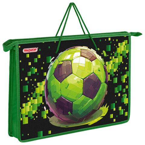 Папка на молнии с ручками ЮНЛАНДИЯ А4, 1 отделение, пластик, 80 мм, "Football", 272158