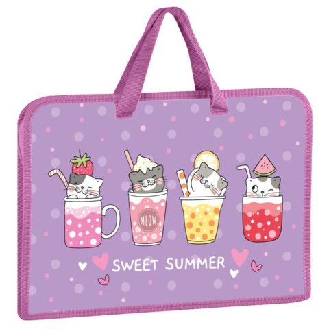 Папка на молнии с ручками ЮНЛАНДИЯ А4, 1 отделение, пластик, ширина 45 мм, "Sweet", 270947