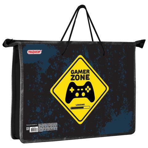 Папка на молнии с ручками ПИФАГОР А4, 1 отделение, пластик, ручки-шнурок, "Game Zone", 271470