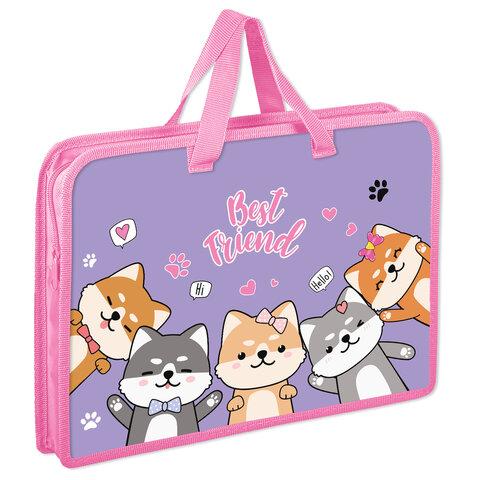 Папка на молнии с ручками ПИФАГОР А4, 1 отделение, пластик, ручки-шнурок, "Best Buds", 271469