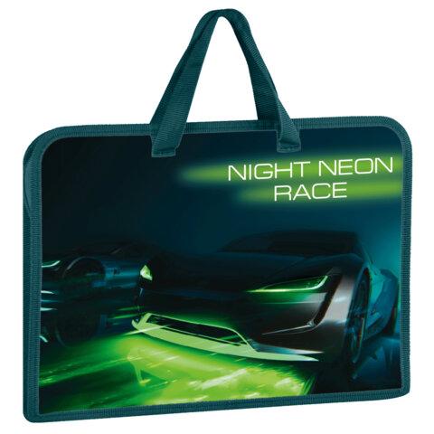 Папка на молнии с ручками ЮНЛАНДИЯ А4, 1 отделение, пластик, ширина 45 мм, "Neon race", 270950