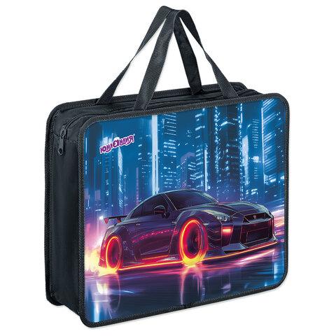 Папка на молнии с ручками ЮНЛАНДИЯ А4, 1 отделение, пластик, 80 мм, "Fire car", 272155